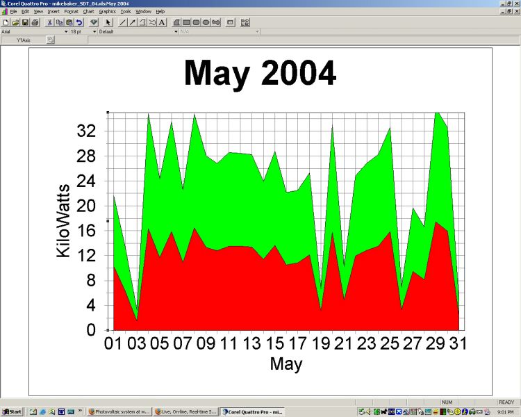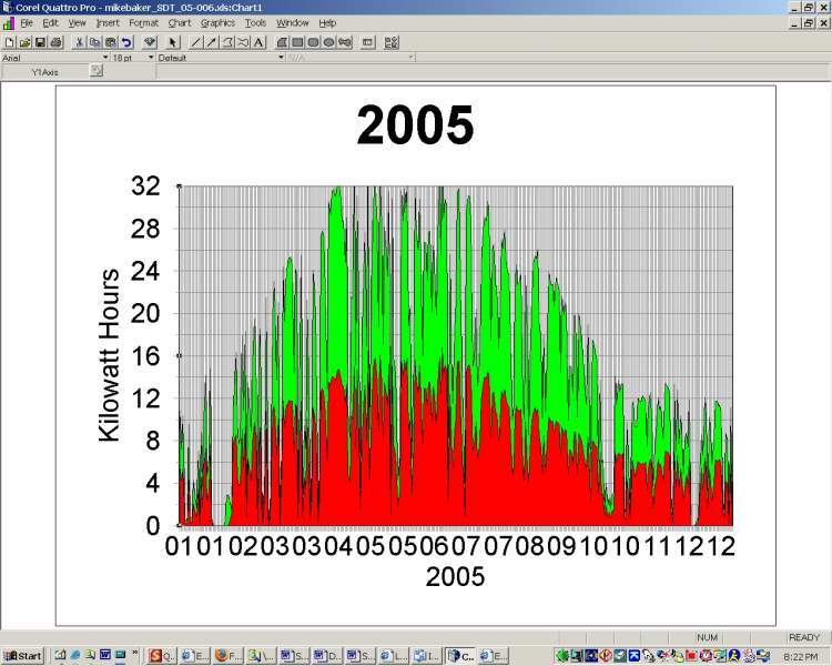 The low production at the end of January in both '04 and '05, is a result of snow covering the solar panels.