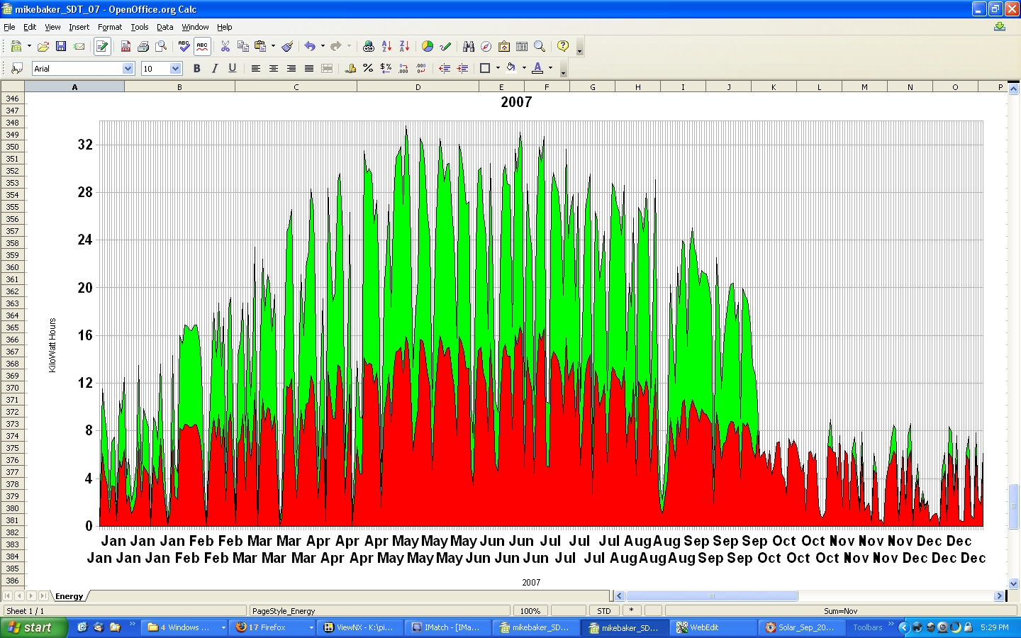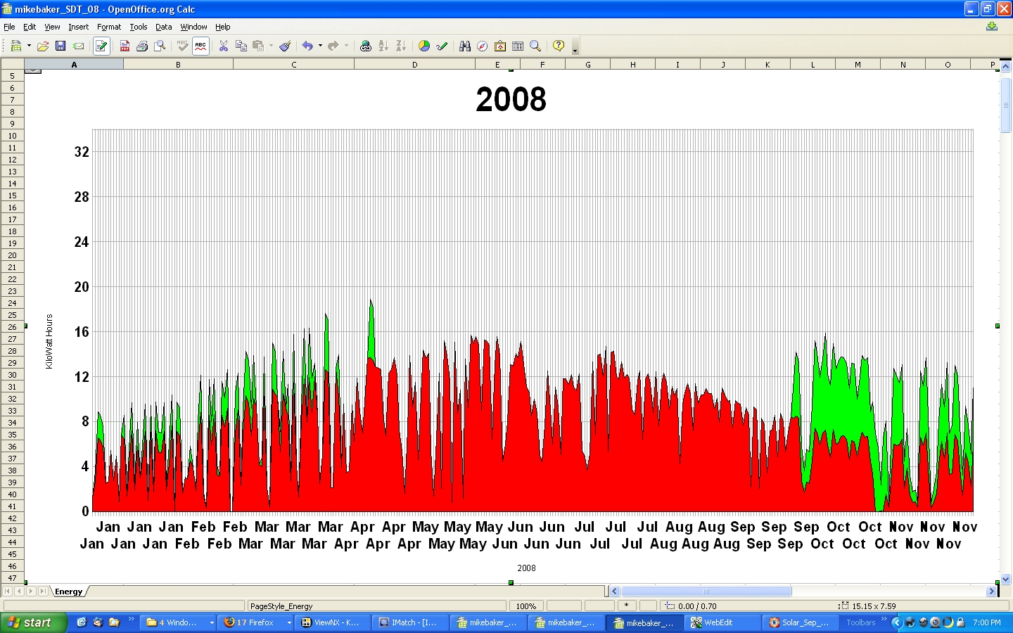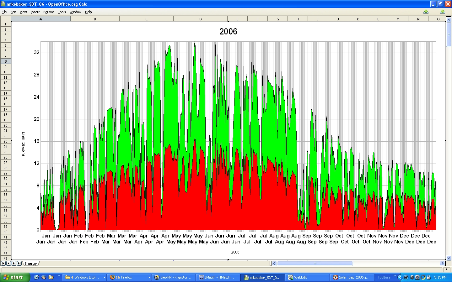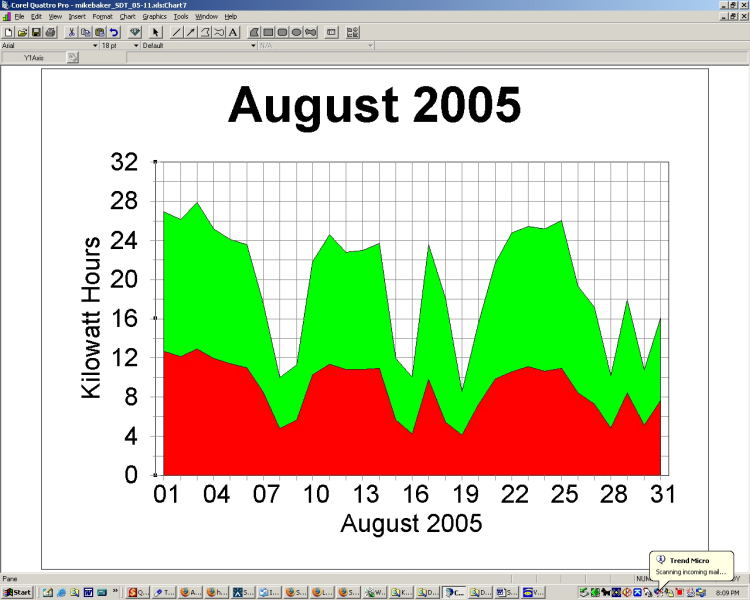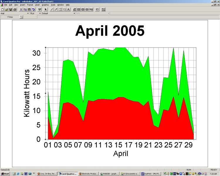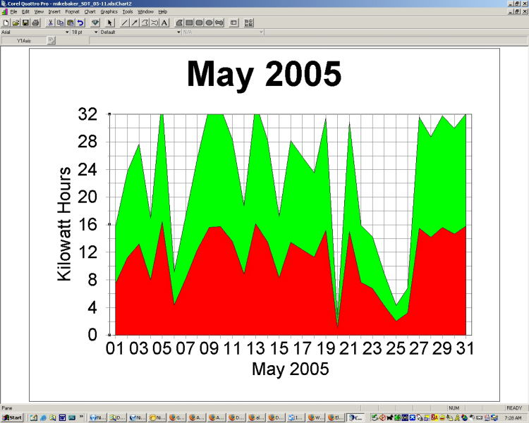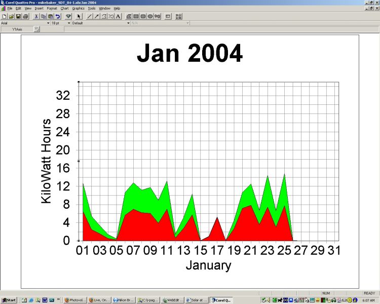 The low production at the end of January in both '04 and '05, is a result of snow covering the solar panels.