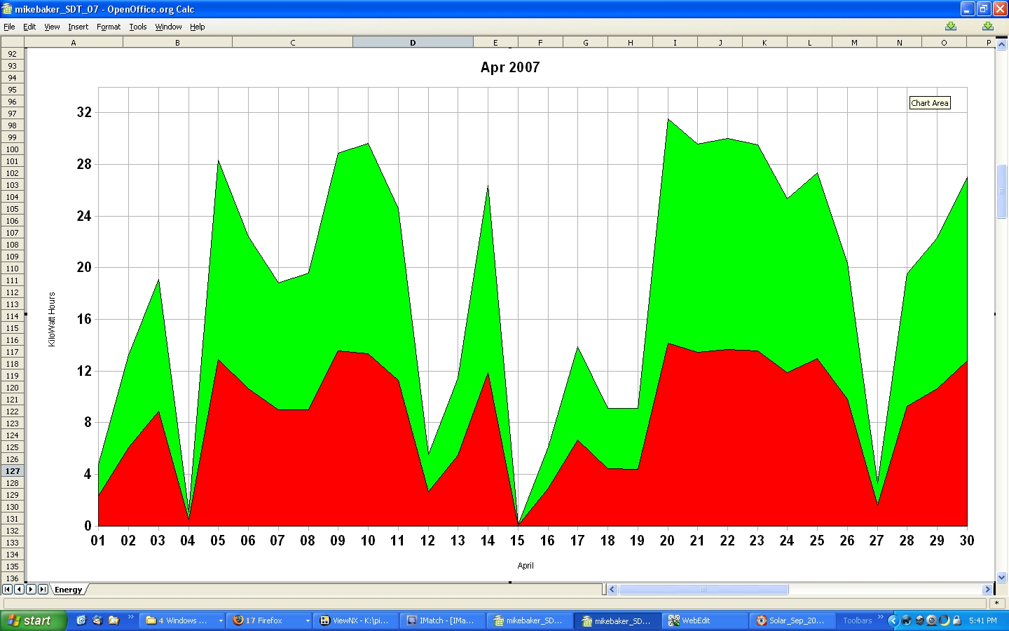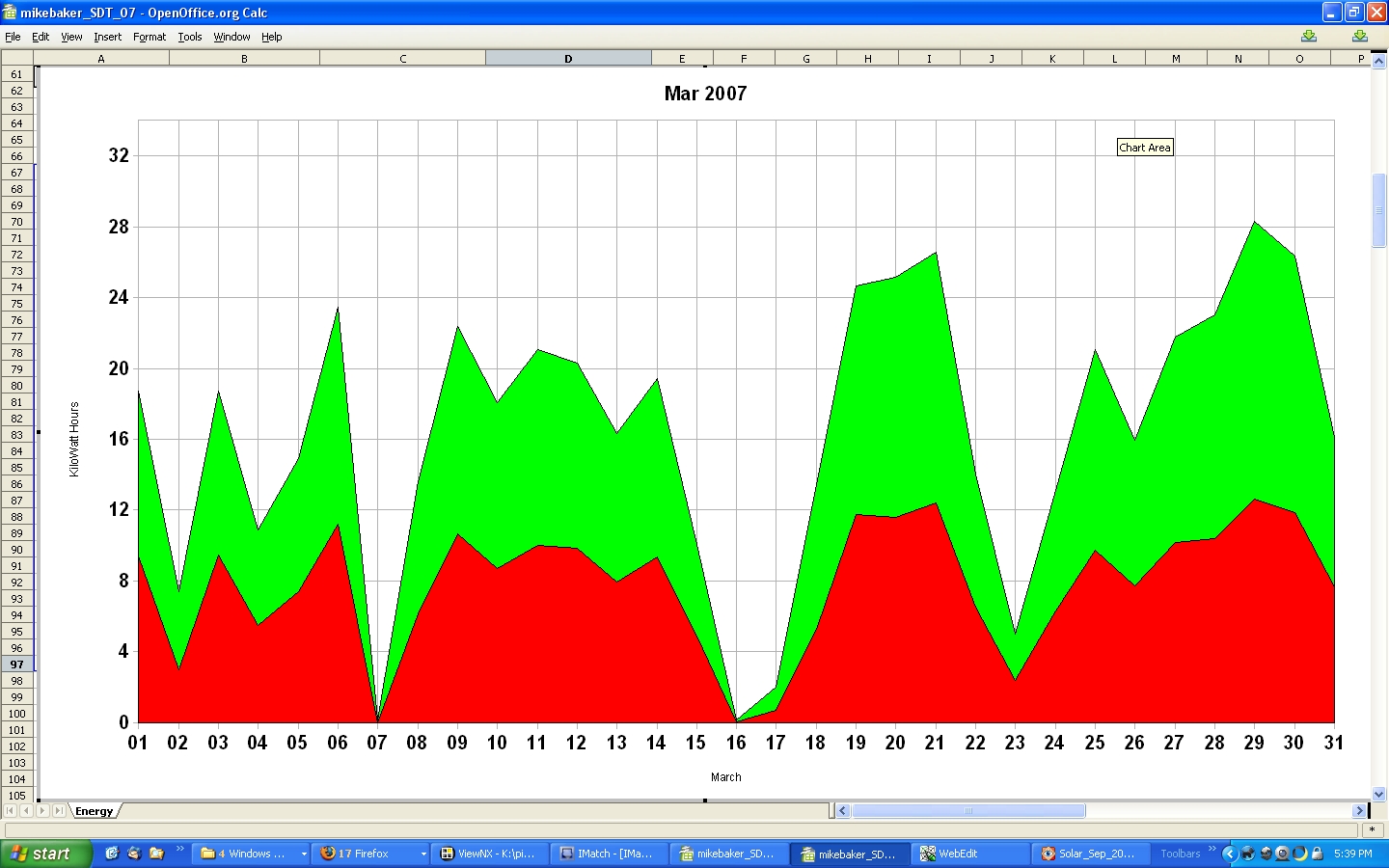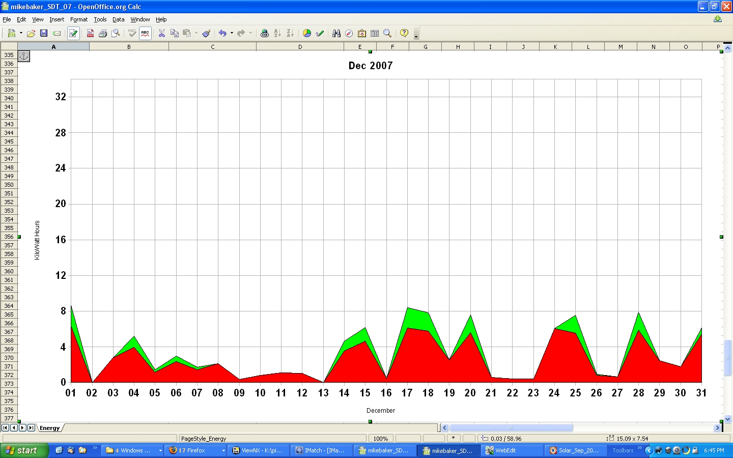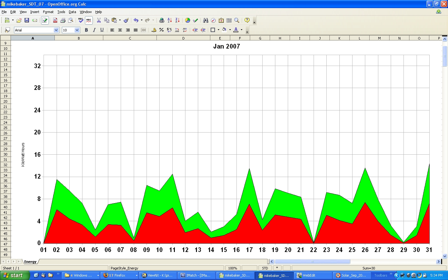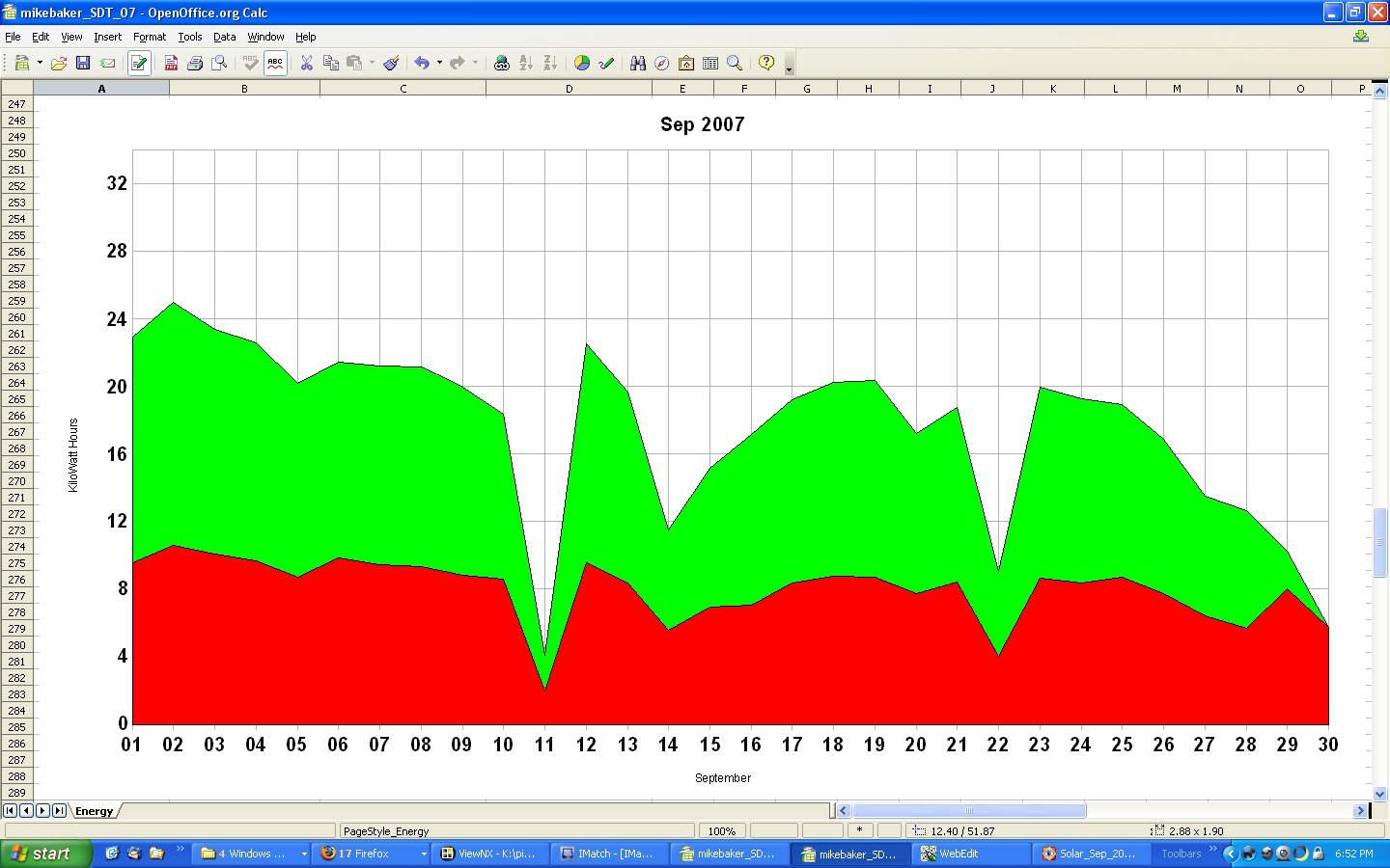 The low production at the end of January in both '04 and '05, is a result of snow covering the solar panels.