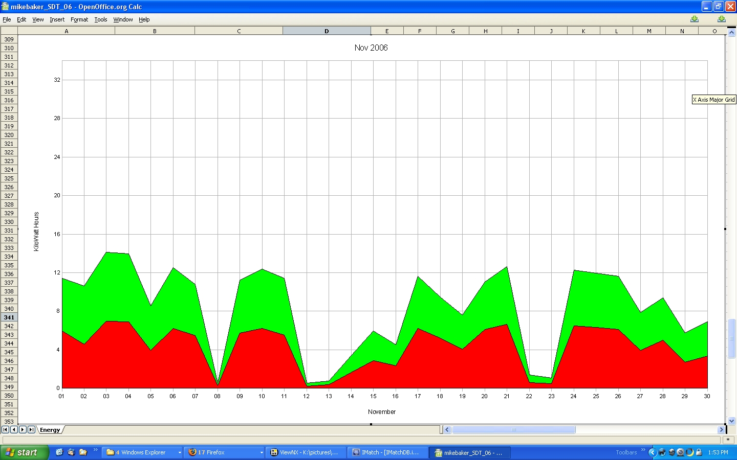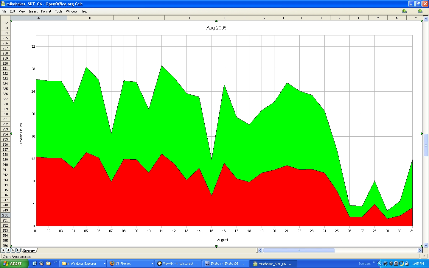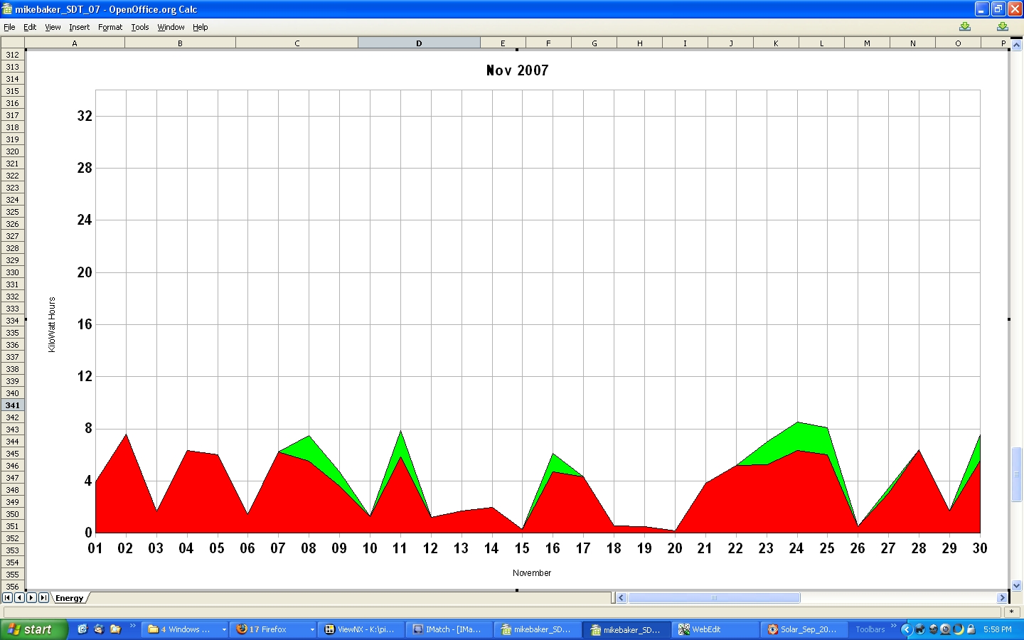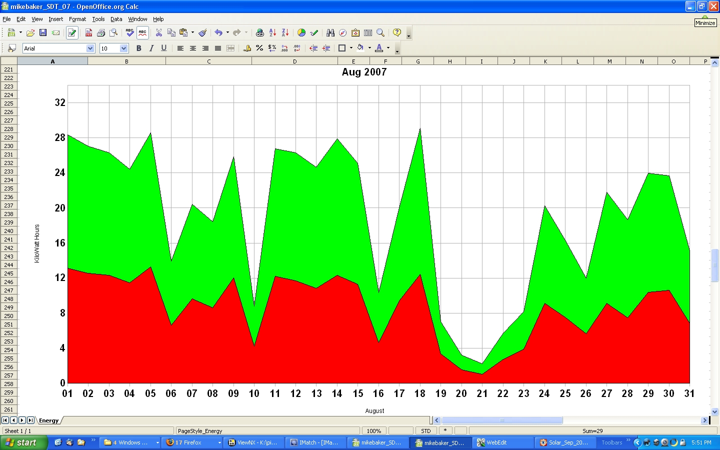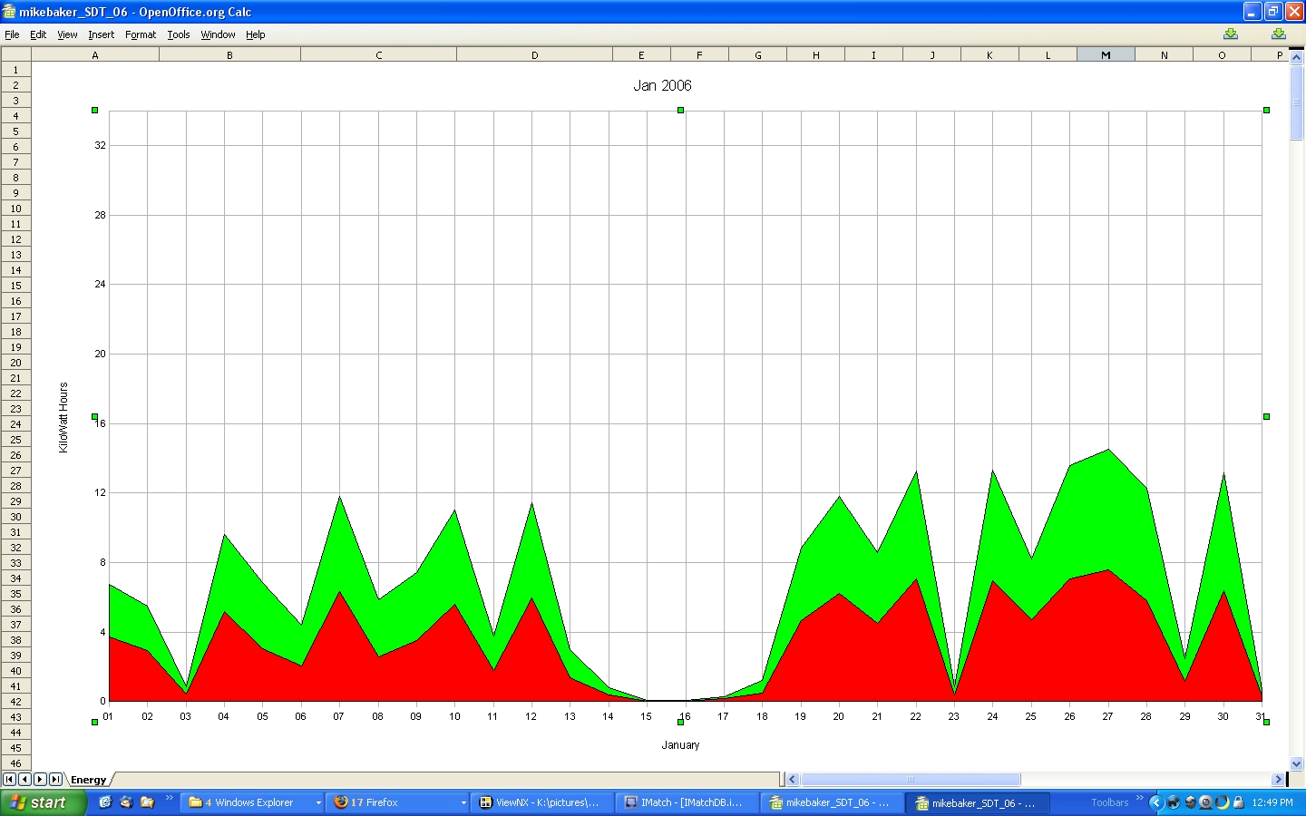 The low production at the end of January in both '04 and '05, is a result of snow covering the solar panels.