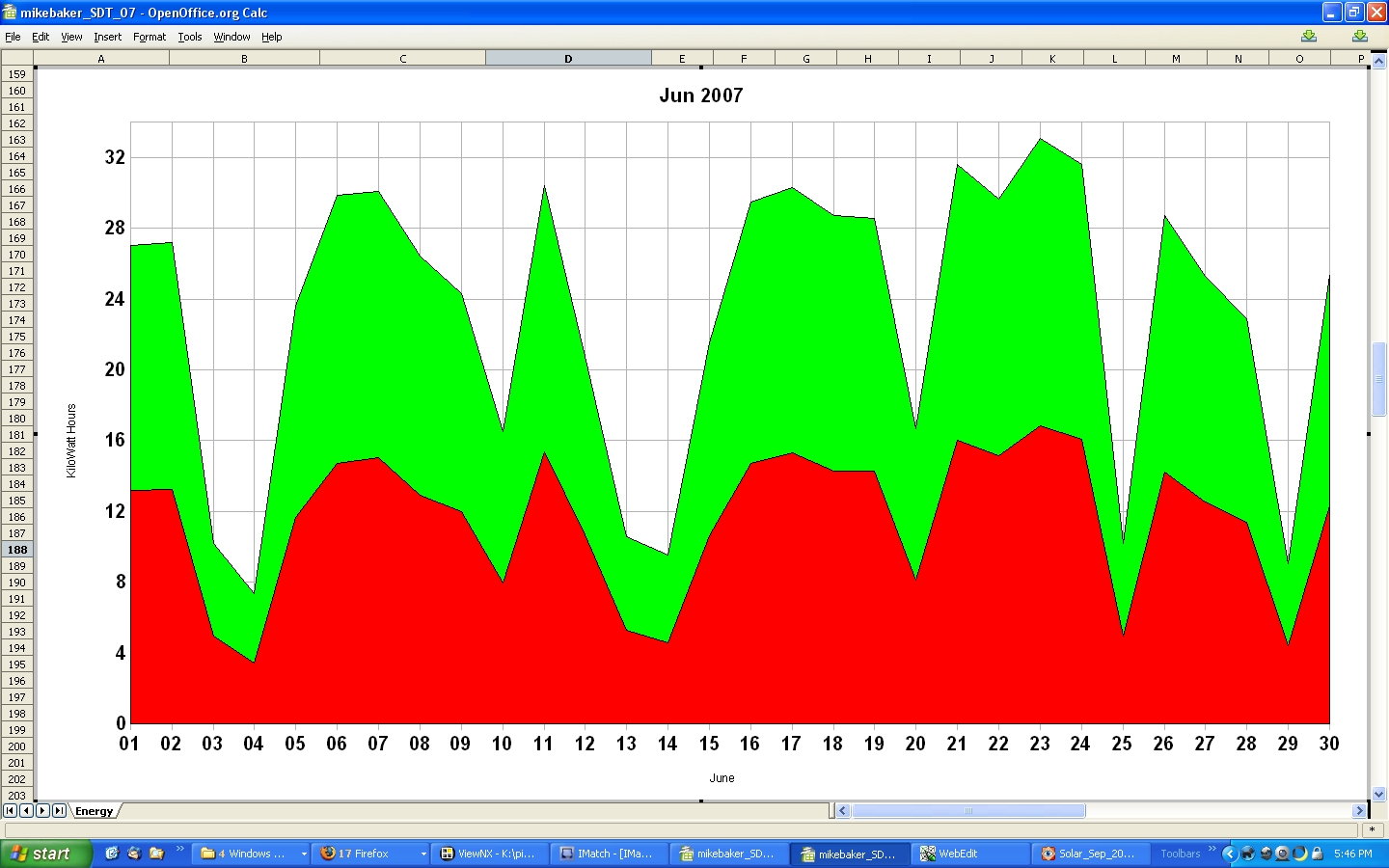 The two colors, red and green, represent the two inverters. In most cases, the daily production from the two inverters will be similar.